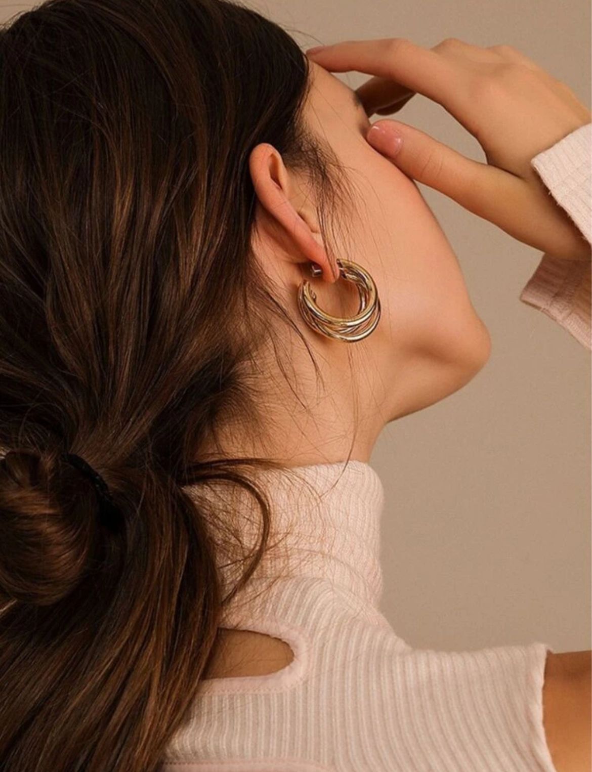 Brinco de argola tripla bem lindo e estiloso.