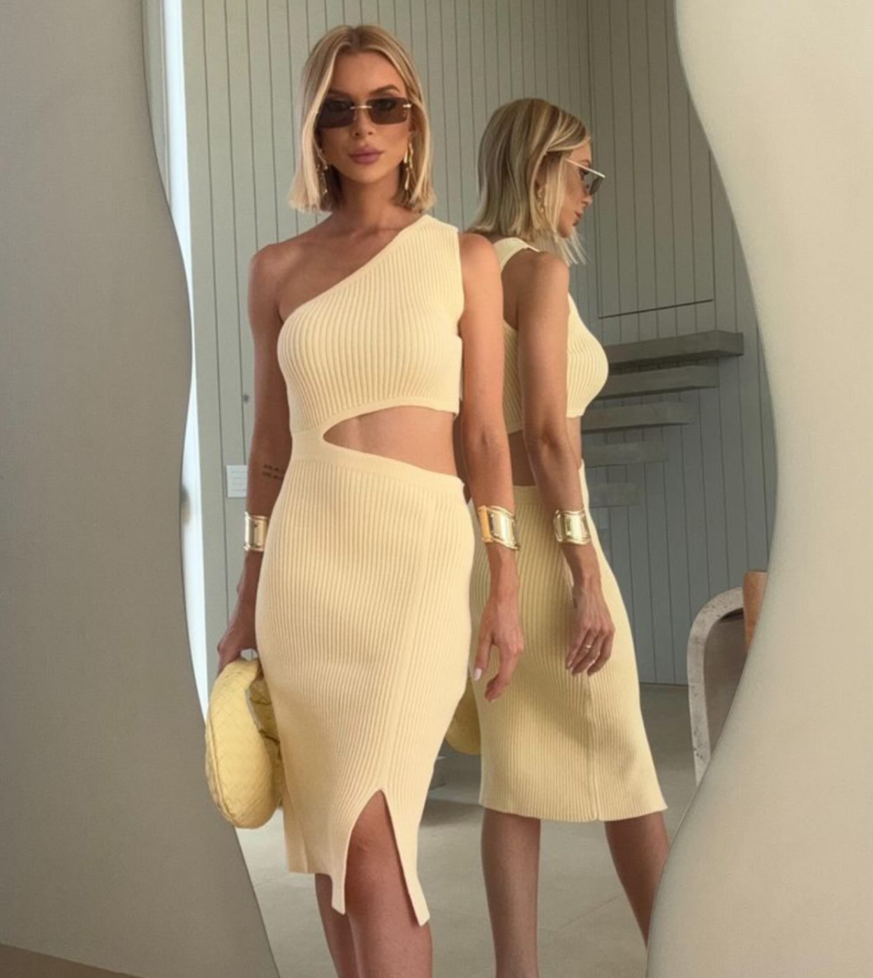 Vestido em tricot modal original canelado bem encorpado e estruturado com detalhe de recorte que afina a cintura e emagrece.